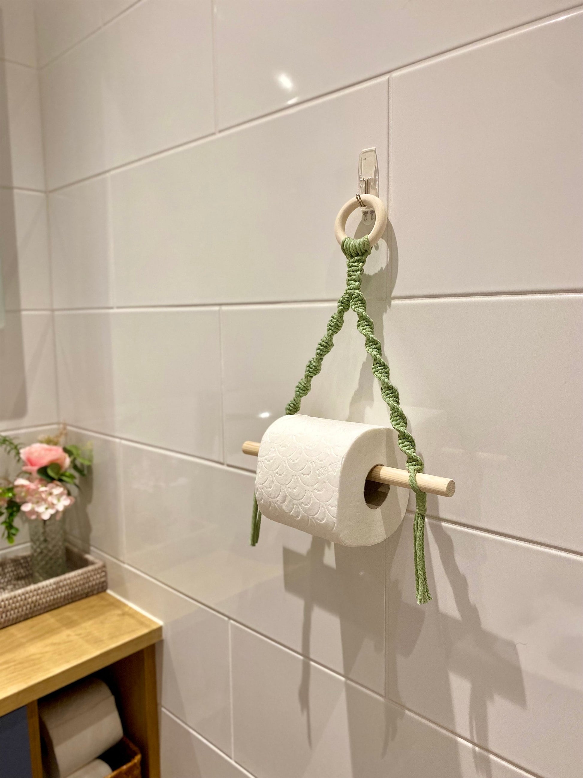 Add a touch of boho charm to your bathroom with our stylish macrame wall hanging toilet roll holder. Elevate your toilet decor and complete your neutral home decor with this farmhouse-inspired bathroom accessories.