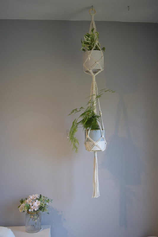 Indoor Double Tier Macrame Ceiling Plant Hanger with Tassel